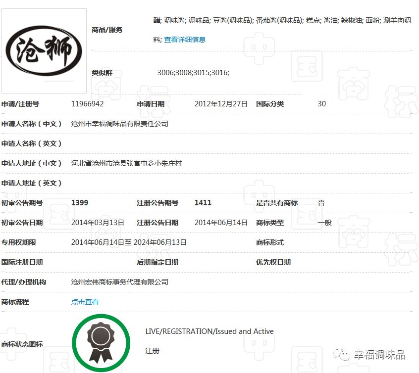 幸福調(diào)味品自創(chuàng)辦30多年以來(lái),在工商部門指導(dǎo)下,充分認(rèn)識(shí)到商標(biāo)品牌的重要性,始終堅(jiān)持走創(chuàng)品牌的路子。公司的“康頌”商標(biāo)于1997年在30類,糖、茶、糕點(diǎn)、調(diào)味品類獲核準(zhǔn)注冊(cè)后,并根據(jù)市場(chǎng)需要,先后又注冊(cè)了包括“滄獅”中文及拼音在內(nèi)的等商標(biāo);形成了涵蓋多類別、多商品、多層次的商標(biāo)品牌庫(kù)。